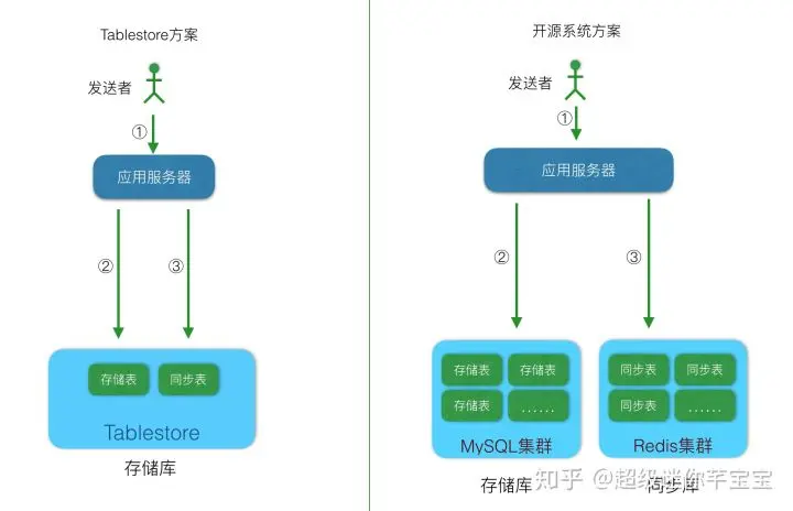 - 如果是基于云服务,那么就用分布式NoSQL,比如Tablestore或Bigtable。