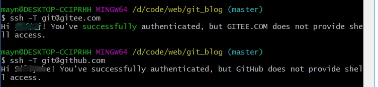 $ ssh -T git@gitee.com