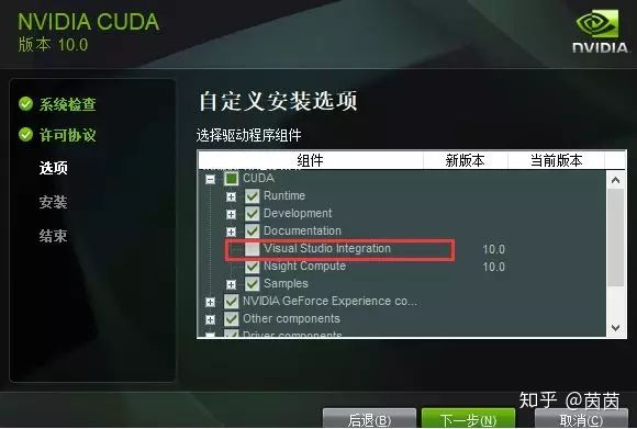 如果你电脑目前安装的驱动版本号新于Cuda本身自带的驱动版本号,那一定要把这个勾去掉。否则会安装失败(相同的话,就不用去取勾了)