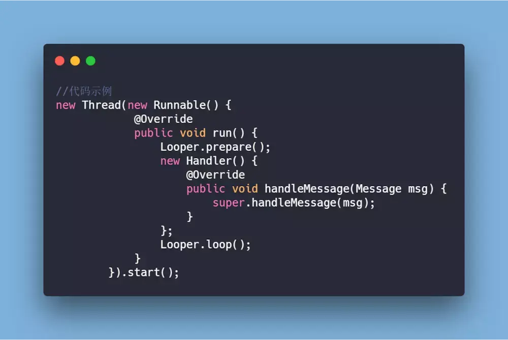 - 在主线程创建的时候会创建一个Looper,同时也会在在Looper内部创建一个消息队列。而在创键Handler的时候取出当前线程的Looper,并通过该Looper对象获得消息队列,然后Handler在子线程中通过MessageQueue.enqueueMessage在消息队列中添加一条Message。