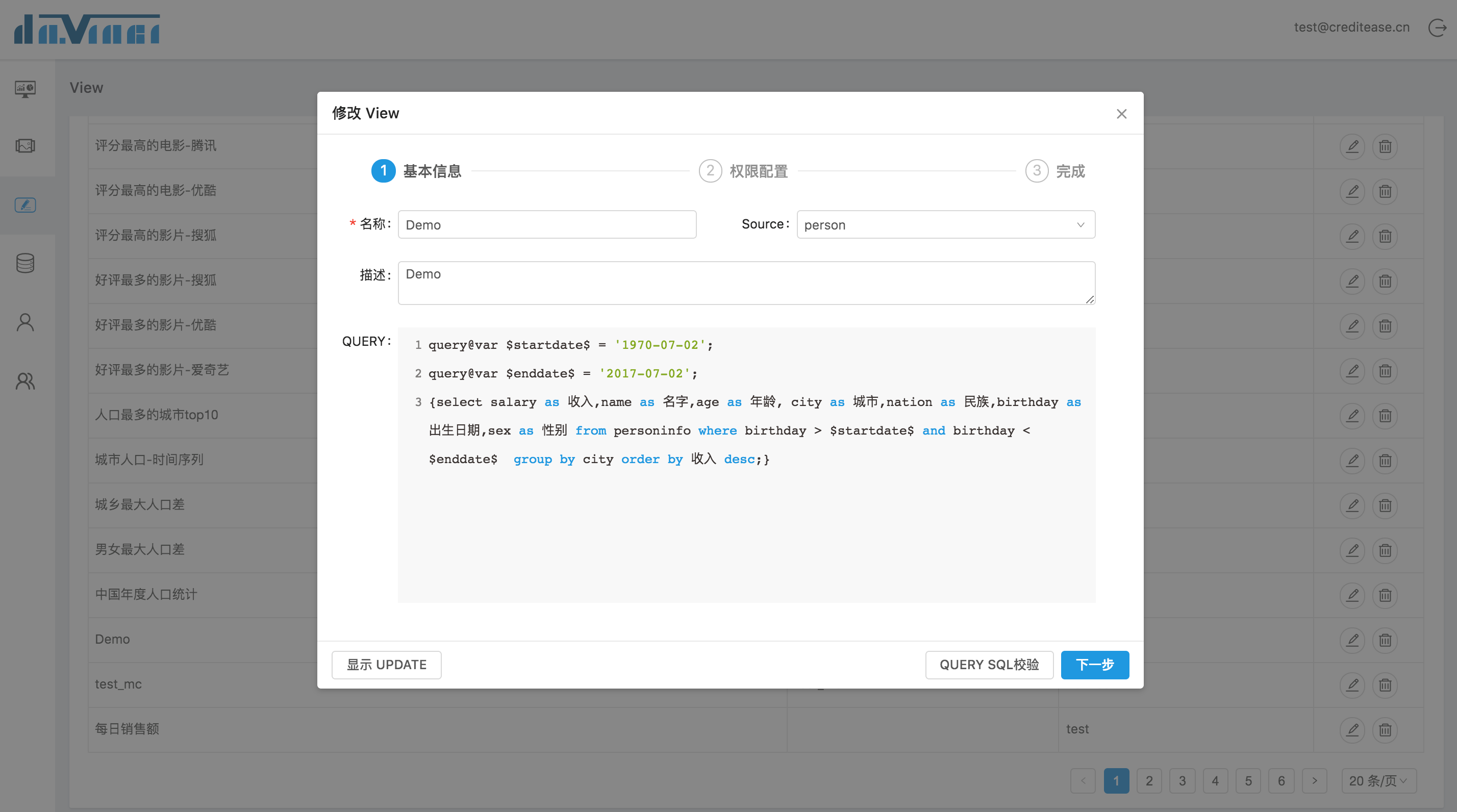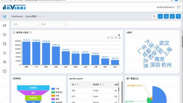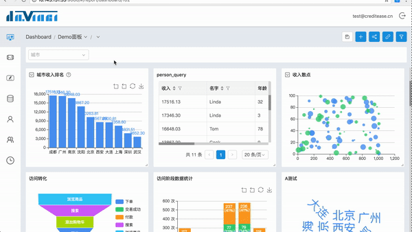 Davinci 是一个DVAAS(Data Visualization as a Service)平台解决方案,面向业务人员/数据工程师/数据分析师/数据科学家,致力于提供一站式数据可视化解决方案。既可作为公有云/私有云独立使用,也可作为可视化插件集成到三方系统。用户只需在可视化UI上简单配置即可服务多种数据可视化应用,并支持高级交互/行业分析/模式探索/社交智能等可视化功能。