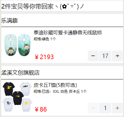 因为商品列表是循环出来的,在点击按钮时获取点击的这一项商品的下标(index),并执行相关的总价的数据设置。