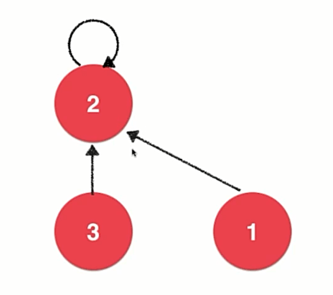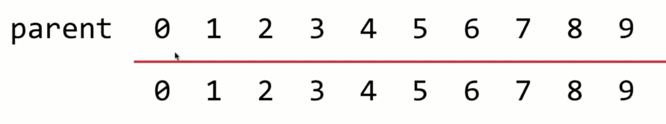 如图,parent[i]表示的就是第i个节点指向了哪个元素,在初始时每个元素都指向自己。