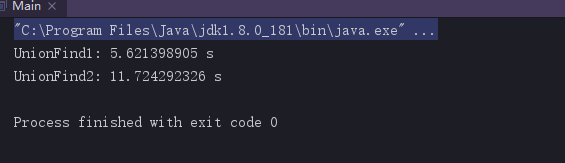 System.out.println("UnionFind2: " + testUF(uf2, m) + " s");