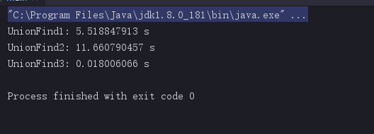 System.out.println("UnionFind3: " + testUF(uf3, m) + " s");