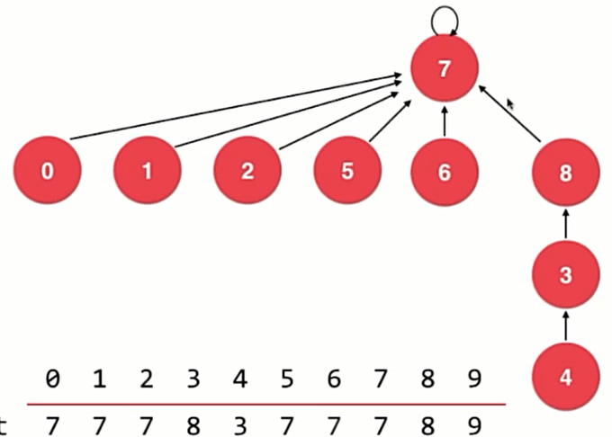 将每一个元素看做一个节点,然后采用开头说的一种由孩子节点指向父亲节点的树结构,对于树的根节点让它指向自身。