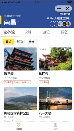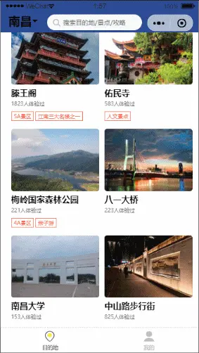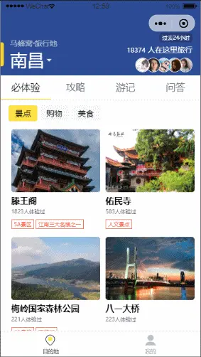 前段时间学习了关于微信小程序的开发,光说不练假把式,所以就打算自己手撸一个微信小程序,而网上电商类小程序太多了,所以就选择了旅游攻略类小程序来练手。这是我第一次写小程序和第一次写文章,不足之处请多包涵,谢谢。下面我会分享我在写小程序的时候遇到的问题和获得的经验,希望能给你带来帮助,也欢迎大佬指正。最后,我要感谢我在写小程序的时候给我帮助的老师和同学,还有百度上所有给过我帮助的有名的无名的作者。我的废话说完了,先上项目效果图。