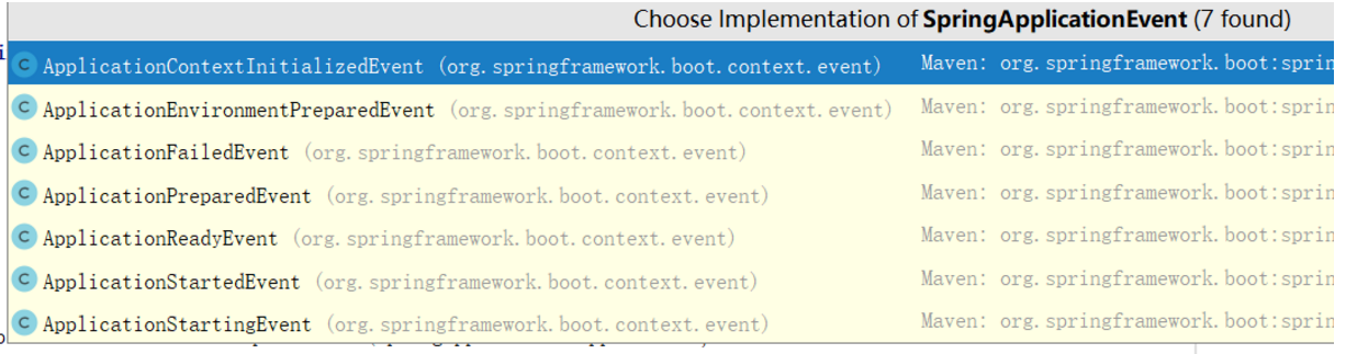 其中:执行过程中,通过SpringApplicationRunListener的实现类EventPublishingRunListener在对应动作的时间点,Spring启动事件。
