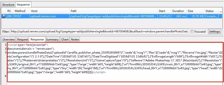 首先来看Jmeter测试工具在图片上传中的案例应用。首先结合互联网产品人人网,在人人网中有图片上传的部分,见抓取到的信息: