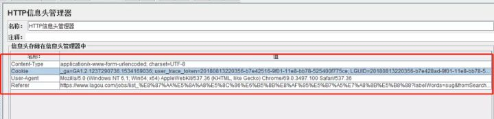 在接口测试中,某些时候Content-Type是application/x-www-form-urlencoded; charset=UTF-8的一种形式,这里以拉钩网产品为案例,在拉钩网中搜索自动化测试工程师,然后获取到第四页的响应数据,在拉钩网中要特别注意的是由于多次请求,后台会屏蔽,所以在请求的请求头信息中需要带上User-Agent和Cookie,见截图: