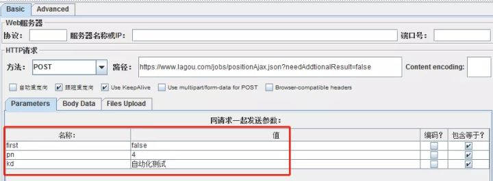 那么在Jmeter中就非常简单了,见请求参数在Jmeter填写后的截图: