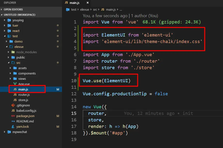在上面新建的项目根目录下安装element-ui,命令如下: