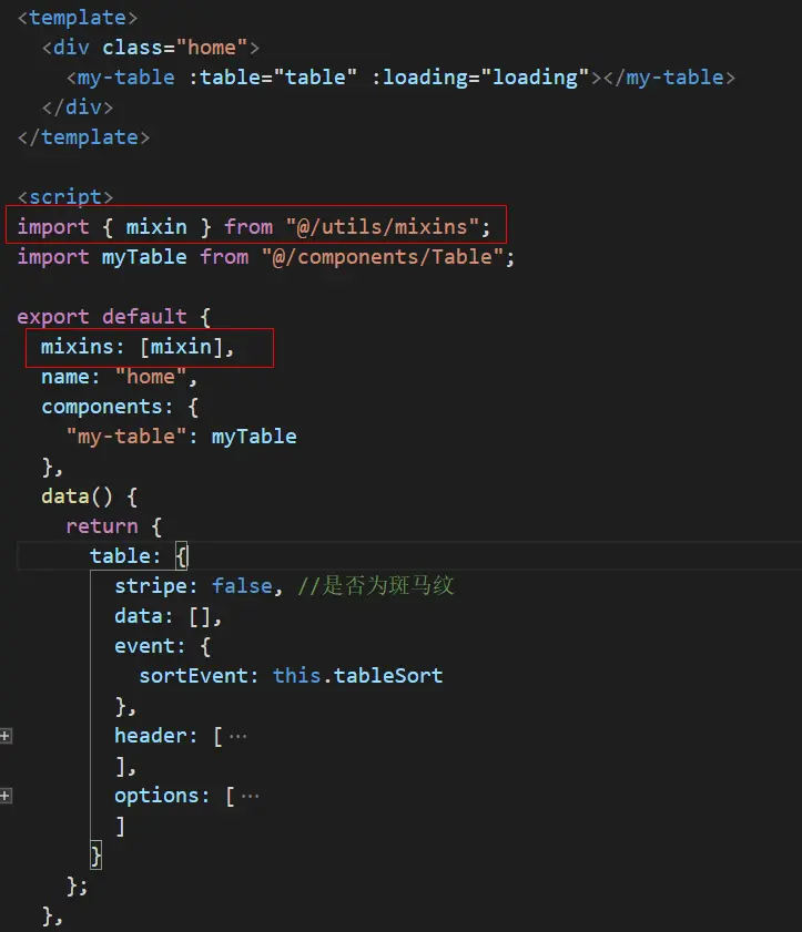 这里结合element-ui表格的二次封装这篇文章里面封装的table组件来介绍mixins这个文件的具体写法和大致内容。