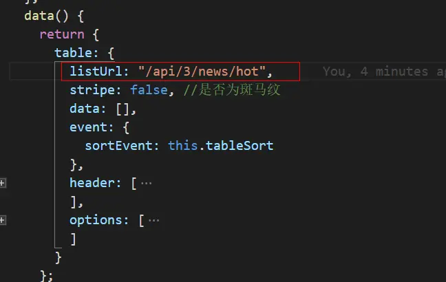 上面有一个listUrl地址目前没有,其实这时只需要在home.vue中定义listUrl即可获取数据了