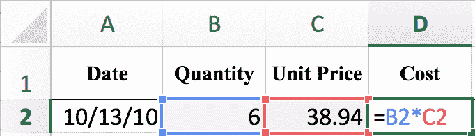 Cost.append( Quantity[i] * UnitPrice[i] )