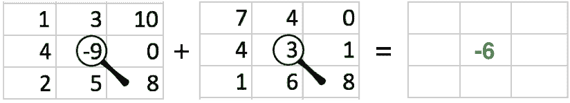 现在,让我们使用累加器来求和 3x3 矩阵的所有元素,我们让nrows = 3和ncols = 3并使用加法运算: