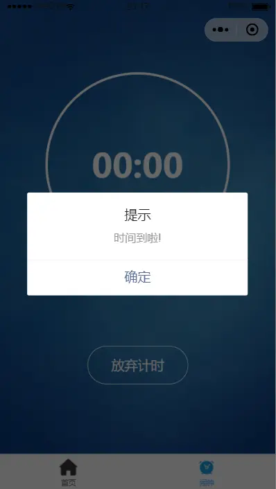 我的想法是把页面分为首页和闹钟页,首页实现点击按钮随机抽取一个选项 根据所选中的选项弹出相应的提示框,若选中的选项为时间,则跳转到闹钟页,闹钟页开始倒计时,时间到了之后播放闹铃并弹出提示框,下面让我们开始吧