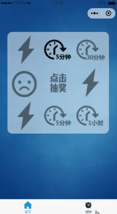 这是一个简单的抽奖+闹钟小程序,起源于本人不想去上课又觉得心里有愧(大学生懂得都懂),干脆做一个抽奖系统,让系统帮我决定是否去上课