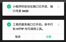 Open project with automation enabled success D:\weApp\testMiniprogram这行提示才算是成功打开了自动化端口(9420)。