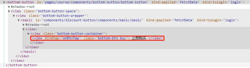 获取bottom-button并打印它的wxml字符串看一下: