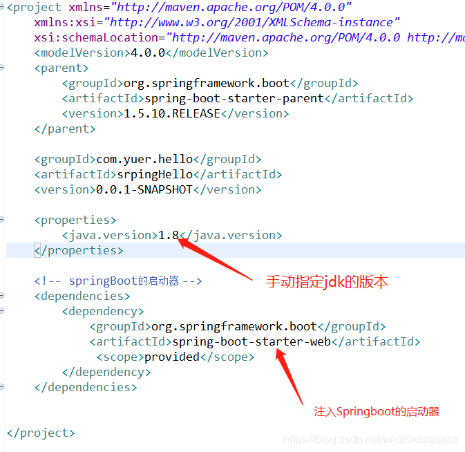 支持全栈式的 web 开发,包括了 romcat 和 springMVC 等 jar