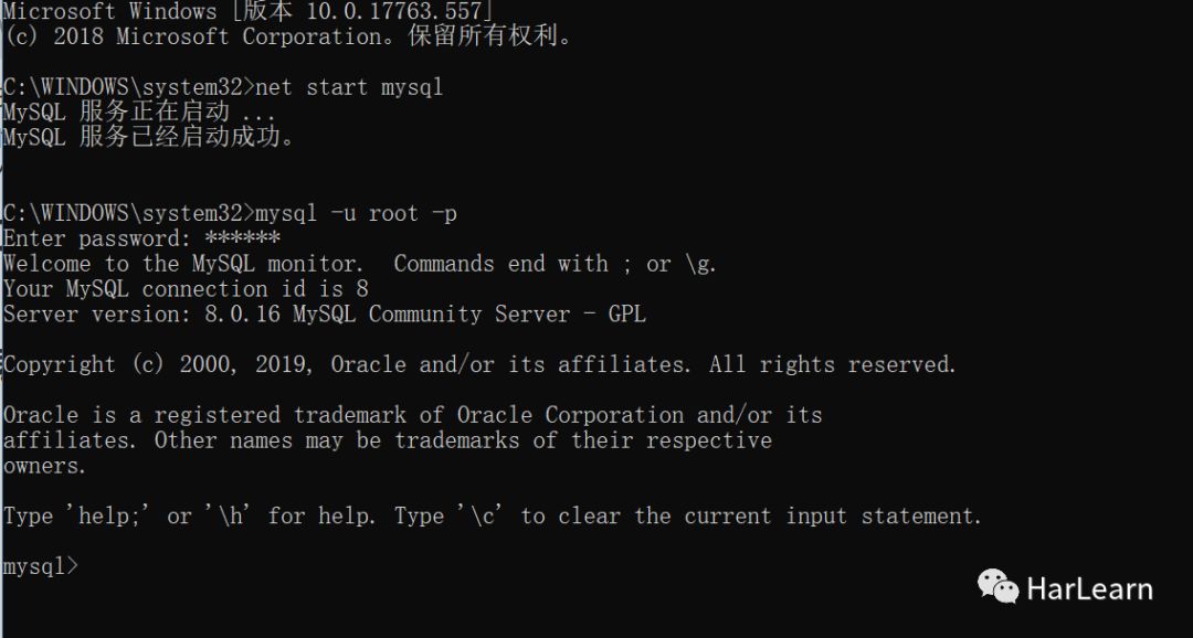 在学习本文章时,确保你的电脑中已经成功安装了 MySQL 。首先以管理员身份打开命令提示符,输入net start mysql 启动MySQL服务,然后输入mysql -u root -p 回车,然后输入密码,进入mysql。