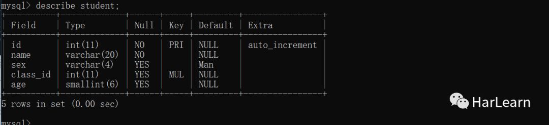 describe table_name 来查看刚创建表的结构。