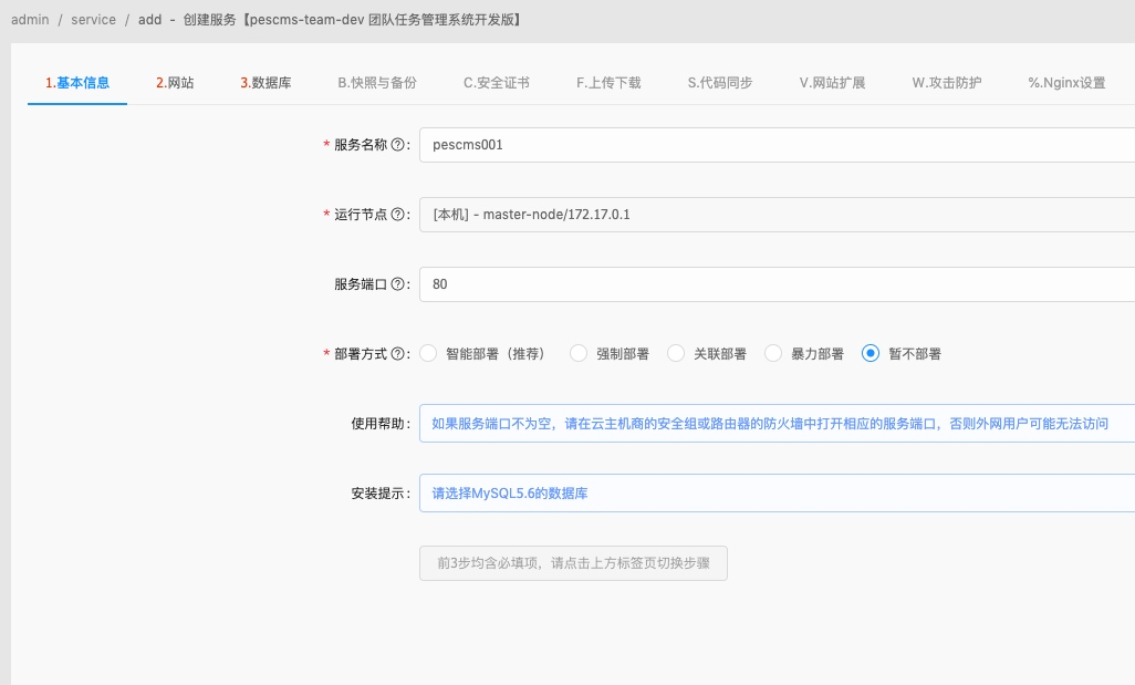 1. 填写服务名称、端口号、选择智能部署