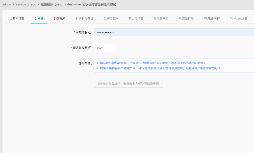 2. 填写域名:www.aaa.com(这里填写自己的域名)