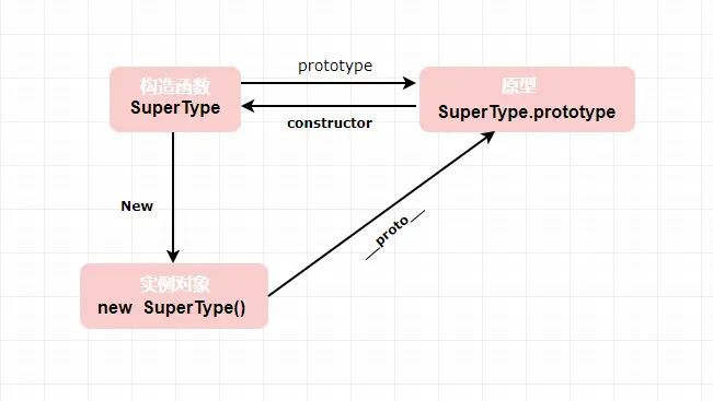 每个构造函数都有一个原型对象,而原型对象都包含一个指向构造函数的指针(constructor),而实例都包含一个指向原型对象的内部指针(proto)。