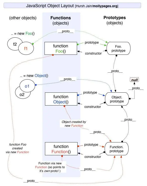 上面只是简单地介绍了原型链的概念以及运作机制,而完整的原型链远远没有那么简单,来看一张图: