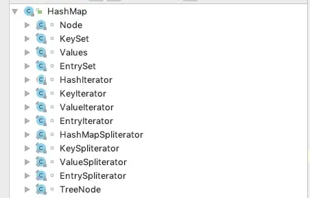 jdk1.8采用数组+链表+红黑树的结构来实现。内部类主要有Node单向链表、KeySet类 values、EntrySet、HashIterator、KeyIterator、ValueIterator、EntryIterator 、HashMapSpliterator、KeySpliterator、ValueSpliterator、EntrySpliterator、 TreeNode红黑树结构