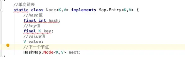 if ((e = p.next) == null) {