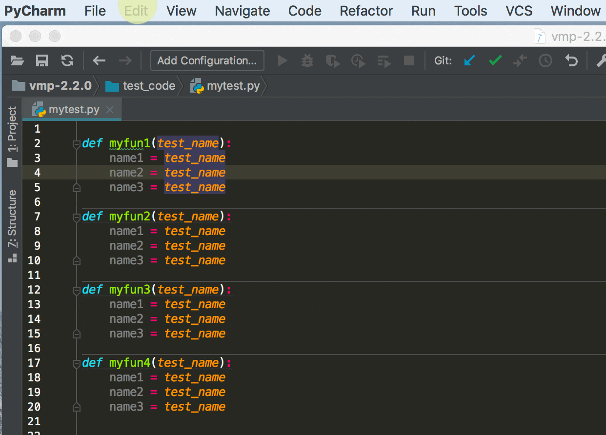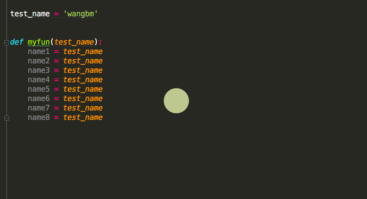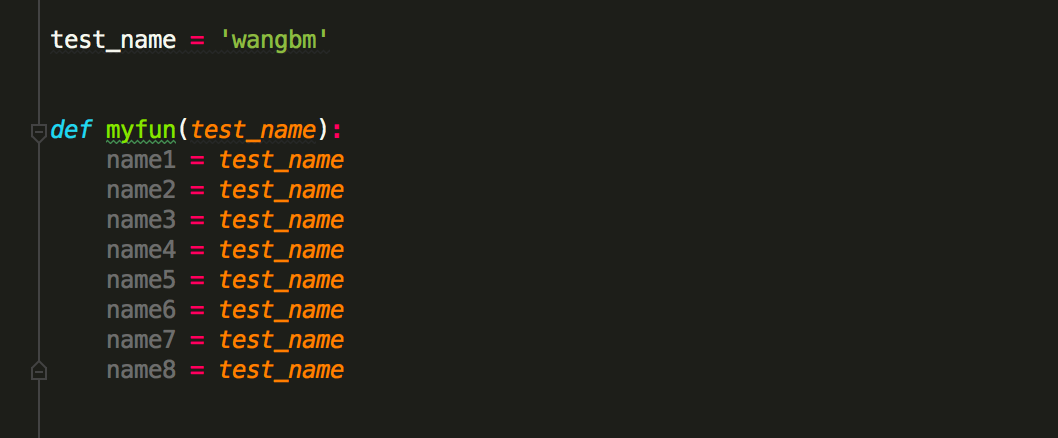 比如下面这段代码,我只想改myfun 里的的test_name,而对于全局下的同名变量是不应该修改的。如果你全局替换,就会有误伤。