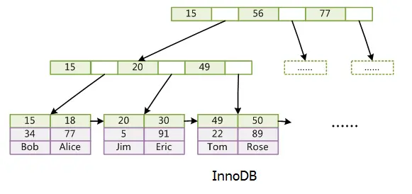 后来,在B+树上增加了顺序访问指针,也就是每个叶子节点增加一个指向相邻叶子节点的指针,这样一棵树成了数据库系统实现索引的首选数据结构。