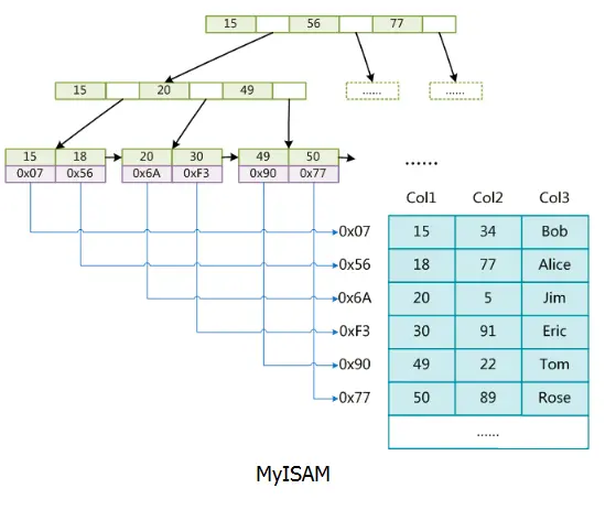 在MySQL中,最常用的两个存储引擎是MyISAM和InnoDB,它们对索引的实现方式是不同的。