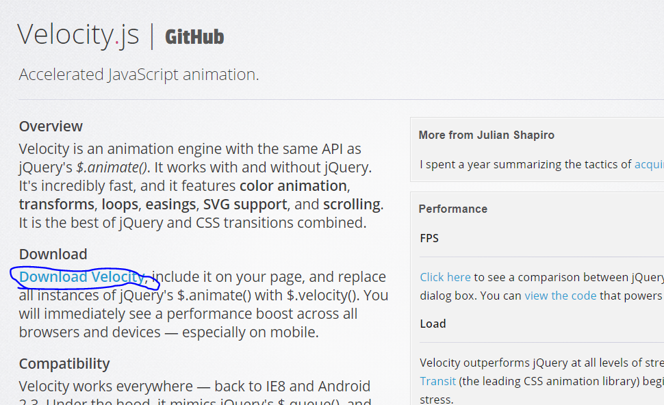 如何使用velocity.js库呢? 1. 打开官网下载文件并在本地引入