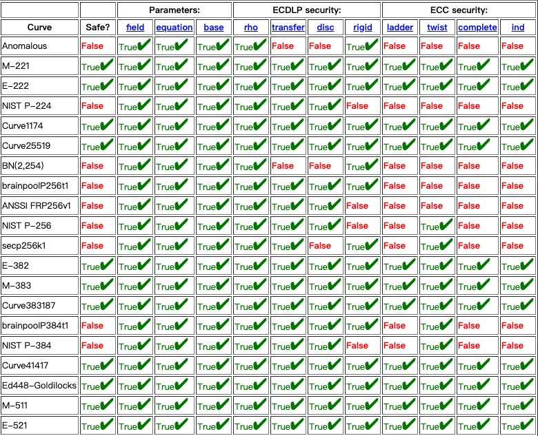 关于算法的安全性,Bernstein进行了全面的考察,结果见下面截图,具体参见这里: