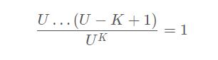 由于K是个比较小的值,当U很大时,下面的等式是可以接受的;或者换个方式说,当U大到我们可以接受如下式子的时候,U就足够大了: