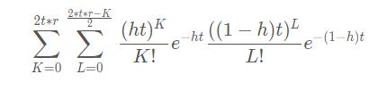 根据Algorand的分析,假设网络中诚实用户所占的权重比例为 h,委员会期望权重为 t ,由上面的公式(1),可以得到最终诚实权重为k的概率为: