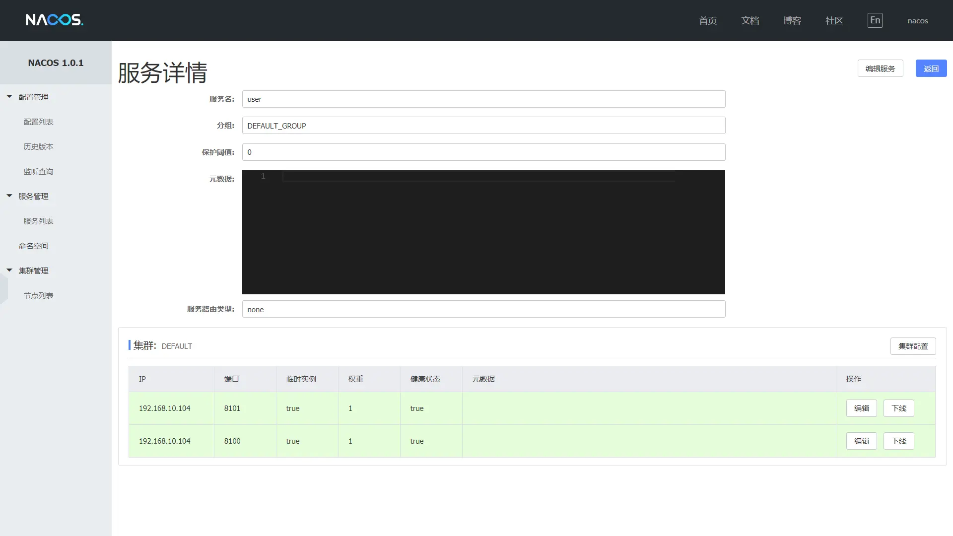 先看看Instance实体类包含的内容:id,ip,port,serviceName,clusterName(所在集群),weight(权重),healthy(是否正常),enabled(是否启用),ephemeral(是否是临时的),这9个属性全部都可以在Console中有所体现。