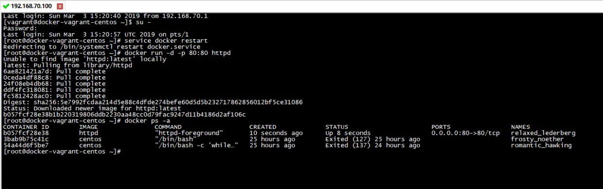 #后台启动一个容器httpd,容器内部端口80,映射到外部是80