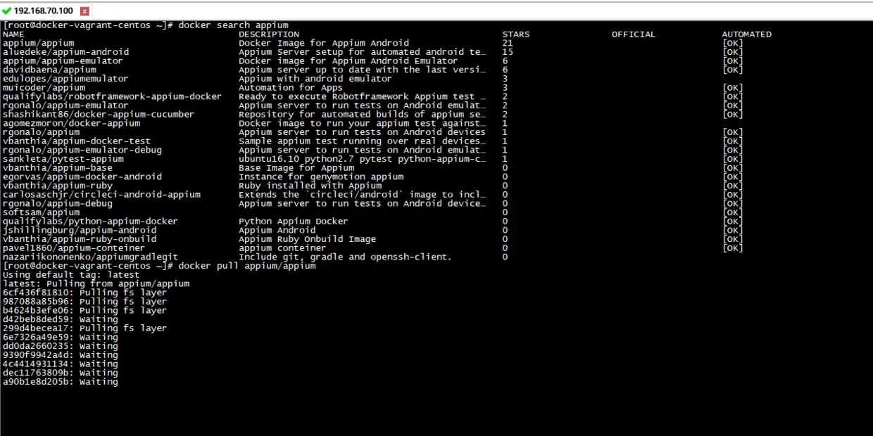 docker search appium