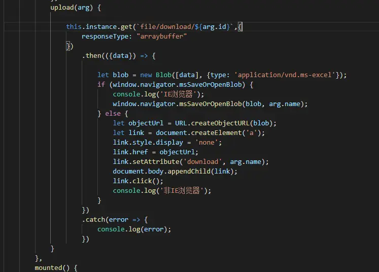 在IE11中通过axios下载文件流,导致乱码,只在IE下载时乱码 君80958 2019-07-03 682 阅读1分钟 图中的responseType设置blob或arraybuffer都是一样乱码,而且blob的类型已经试过有 'application/vnd.ms-excel'、'application/x-msdownload'、'application/octet-stream',都试过也还是乱码或者打不开。而且只在IE中下载会导致这样的错误,在火狐、谷歌中下载均正常。