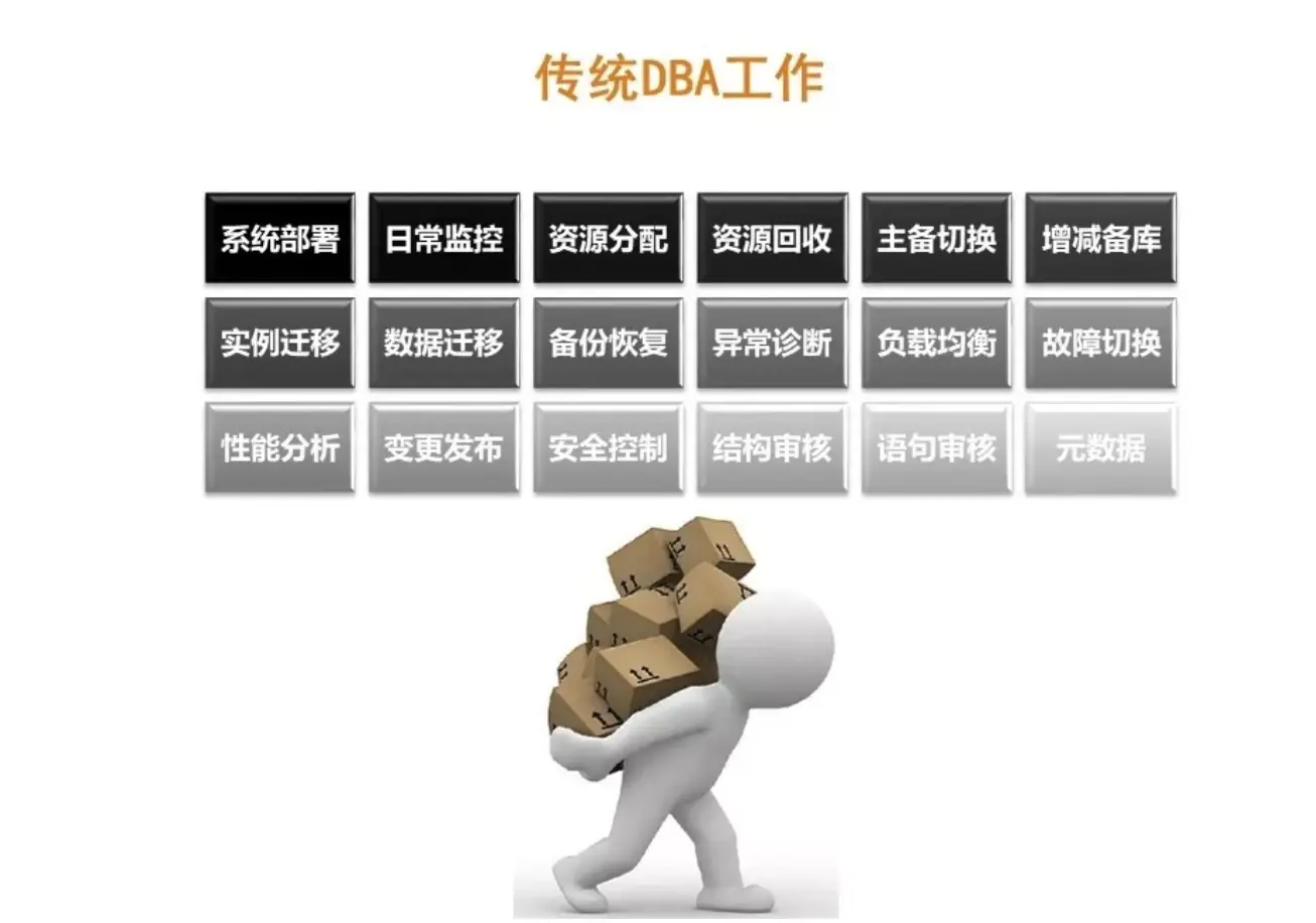 作为基础类的运维工作,数据库的要求是比较高的。上图简单罗列了部分工作,对DBA日常繁琐工作可见一斑。正是基于这点,平台化、自动化、云化的诉求,不断被提出。进而间接对DBA的能力提出了更高的要求。