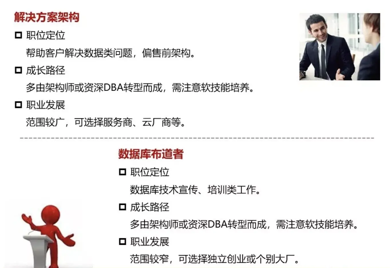 - 数据库布道者,少数的选择,只针对有一定技术影响力的人员才可以考虑。是一种偏向于自由职业者的选择。
