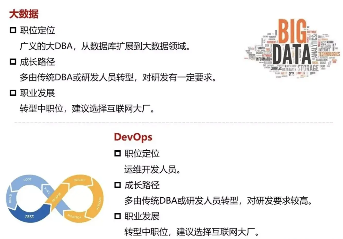 - DevOps,运维开发。适合有一定研发基础的DBA选择。