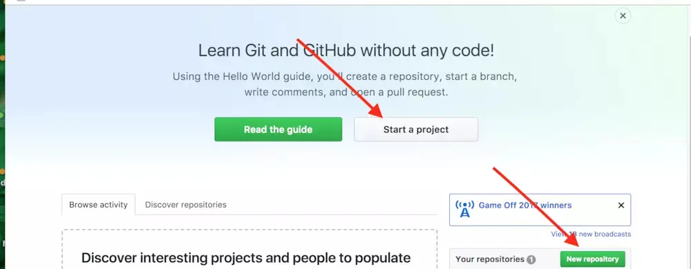 1、在GitHub上新创建一个 repository或者Start a Project,如图: