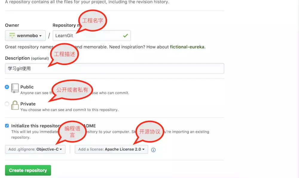 WMBdeMacBook-Pro:LearnGit WENBO$ git commit -m "First Commit"