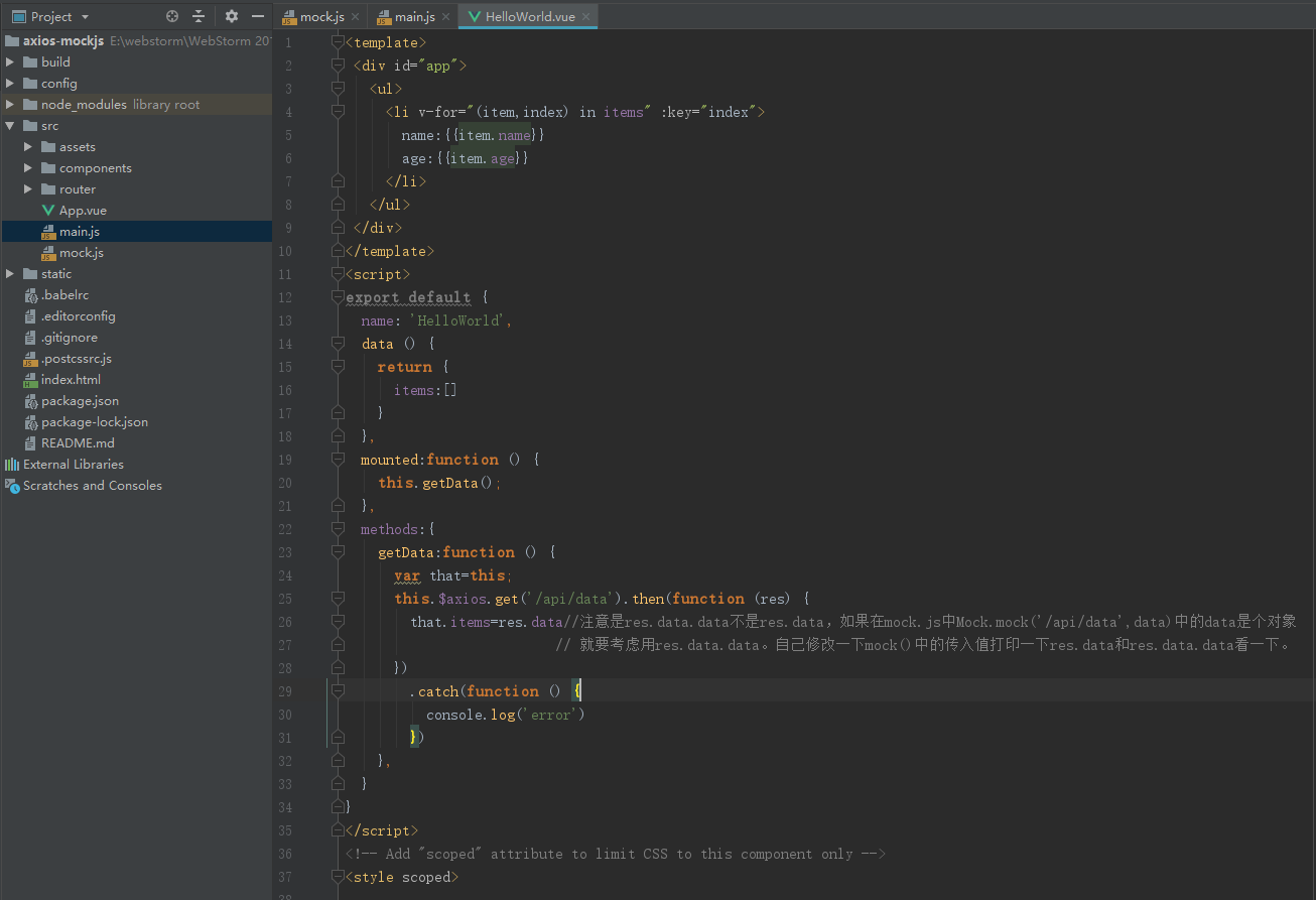 今天学习了一下mockjs+axios模拟数据实现前后端分离,写一个小demo并记录一下,希望对vue的初学者有一点点帮助。(我的编辑器是webstorm,确保已经安装node.js,讲的比较基础)